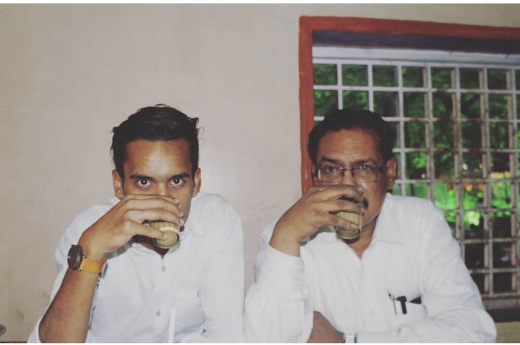 (My father and I at Mehboob studio. Times literature festival. Some years back.)